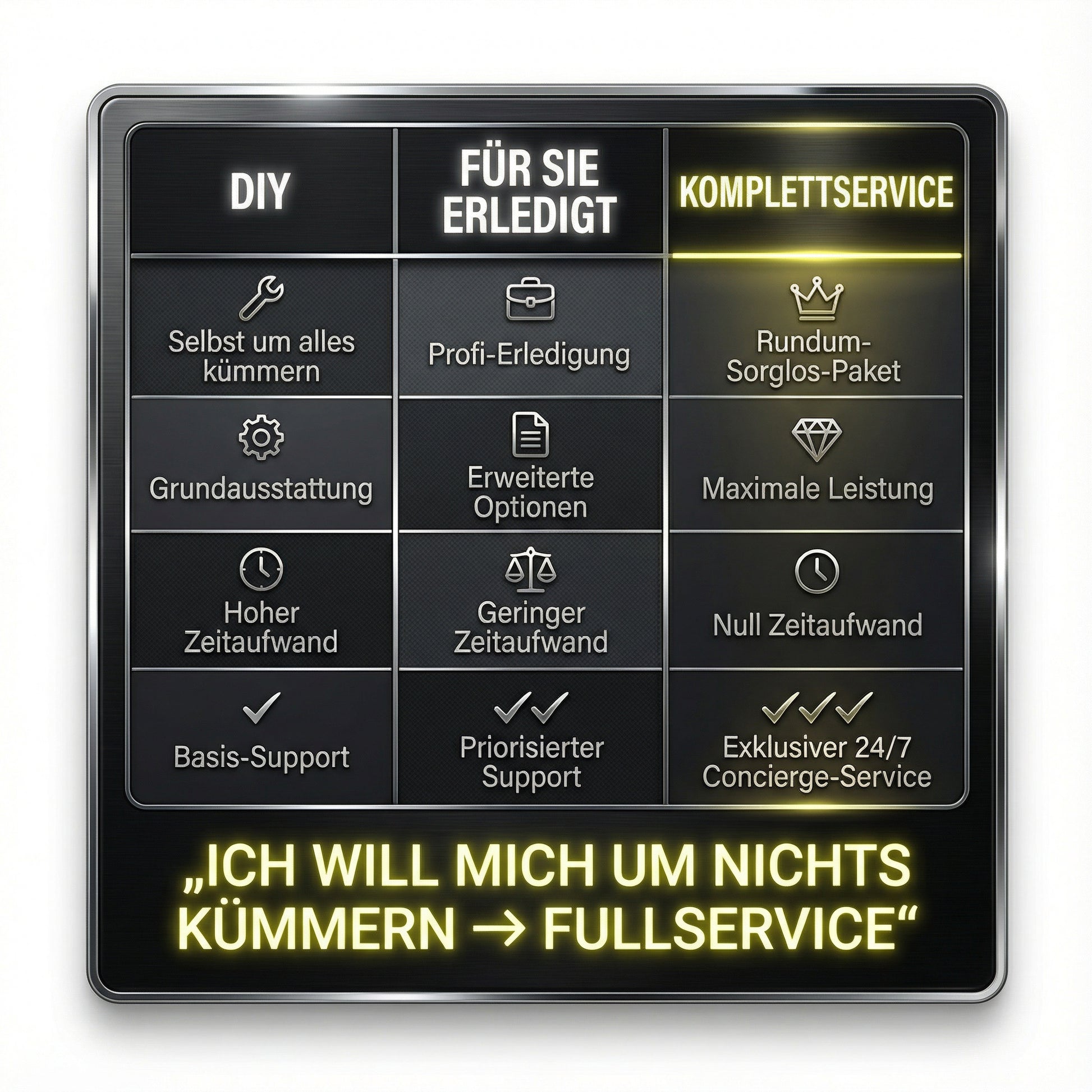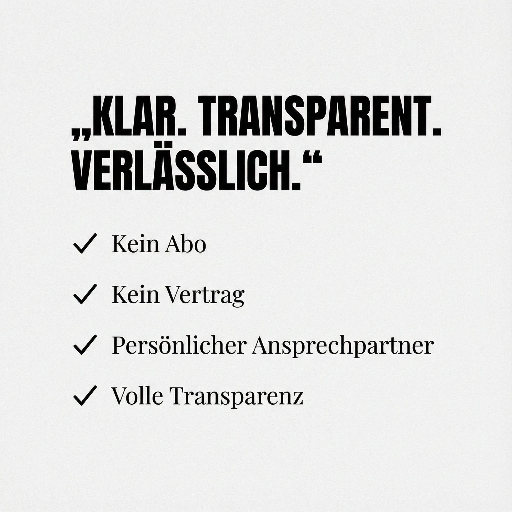 ✔ Kein Abo – einmal zahlen. Keine Vertragsbindung. Klare Leistung. Klarer Ablauf.